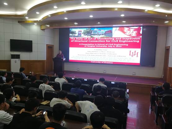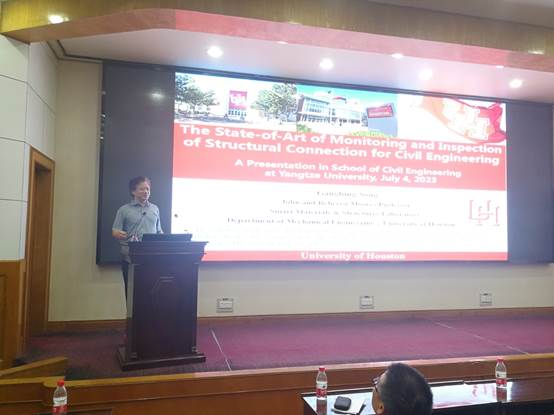 7月4日上午,公司在11教学术报告厅举行了“长大20年”学术论坛暨长江城建讲坛(2023年第七讲)的学术讲座。美国休斯顿大学智能材料和结构实验室创始人、实验室主任、美国休斯顿大学宋钢兵教授做客讲坛,并为学院师生作了题为“The State-of-the Art in Monitoring and Inspection of Structural Connection for Civil Engineering”的学术讲座,学院大约120位教师和研究生参加了此次活动。
